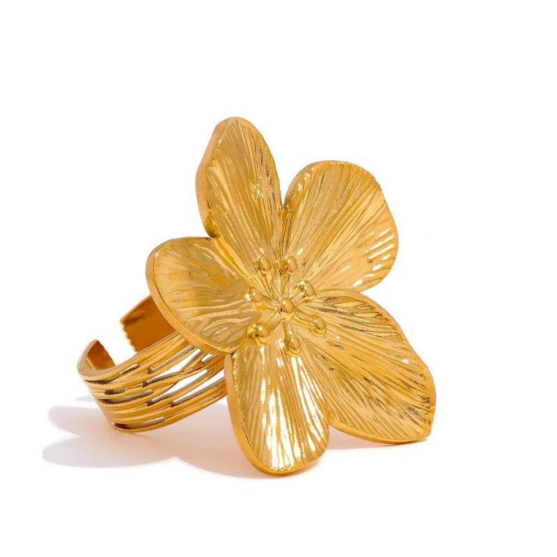 Bague en Acier Inoxydable : Élégance Florale en Doré Brillant
