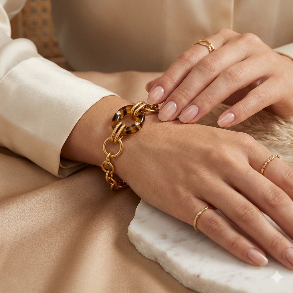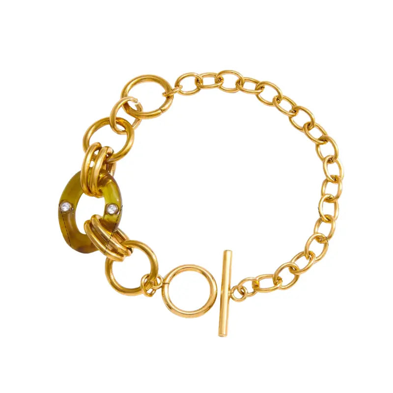 Affirmez votre style avec ce bracelet à maillons en acier inoxydable, sublimé par un maillon en résine et deux zircons scintillants. Un bijou moderne et élégant qui attire le regard dès le premier instant.L’alternance entre l’acier inoxydable et la résine crée un contraste harmonieux, tandis que les deux zircons apportent une touche de brillance subtile. Ce bracelet s’adapte facilement à toutes vos tenues, du look casual au plus sophistiqué.
