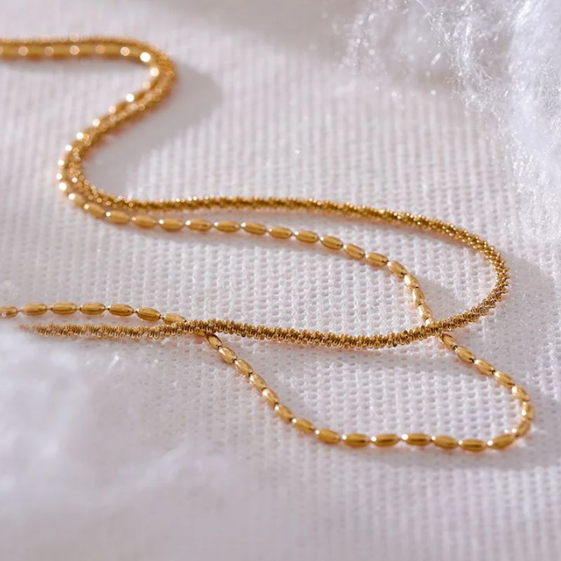Le collier inoxydable double rangs est un bijou élégant et intemporel qui saura sublimer toutes vos tenues. Fabriqué en acier inoxydable de haute qualité, ce collier est résistant à la corrosion et ne ternira pas au fil du temps. Il est également hypoallergénique, ce qui convient aux personnes ayant une peau sensible. Ce collier est composé de deux rangs de maillons délicats, ce qui lui donne une allure raffinée et sophistiquée. Il peut se porter seul pour un look minimaliste ou être associé à d'autres bijoux pour un effet de superposition tendance.